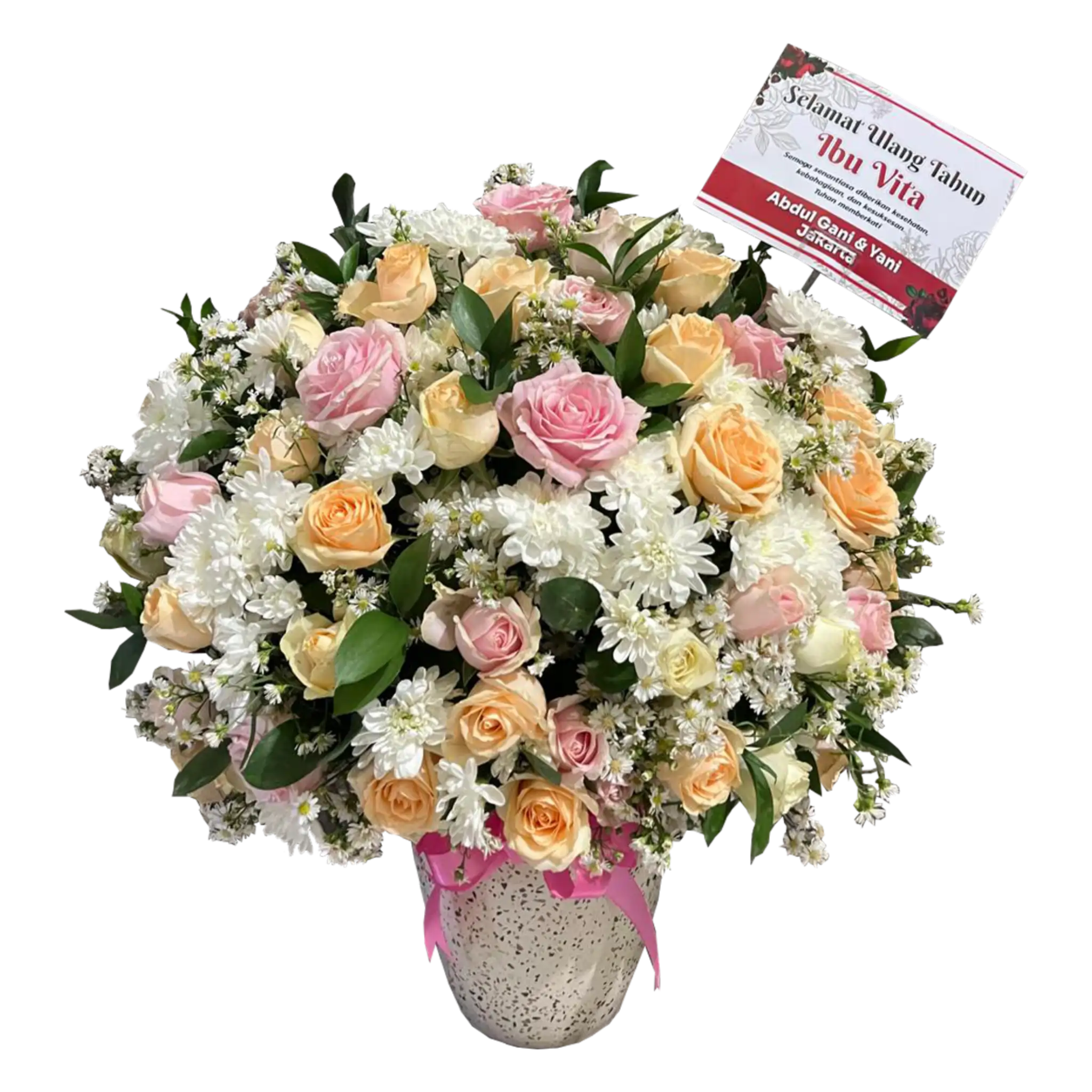 Bunga Meja merupakan rangkaian bunga yang dirangkai dalam sebuah vas yang terbuat dari berbagai macam bahan, seperti kaca, rotan, kayu, keramik dan lainnya yang bisa Anda jadikan sebagai salah satu dekorasi ruangan serta hadiah romantis bagi pasangan.